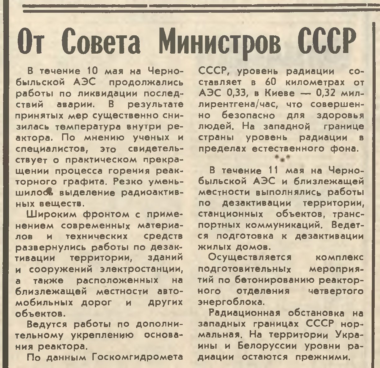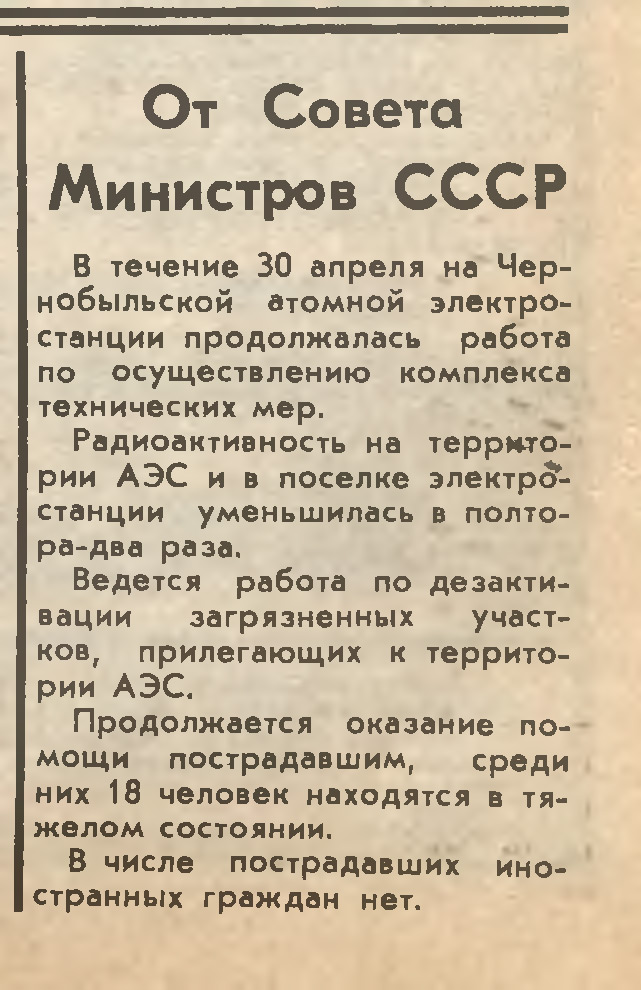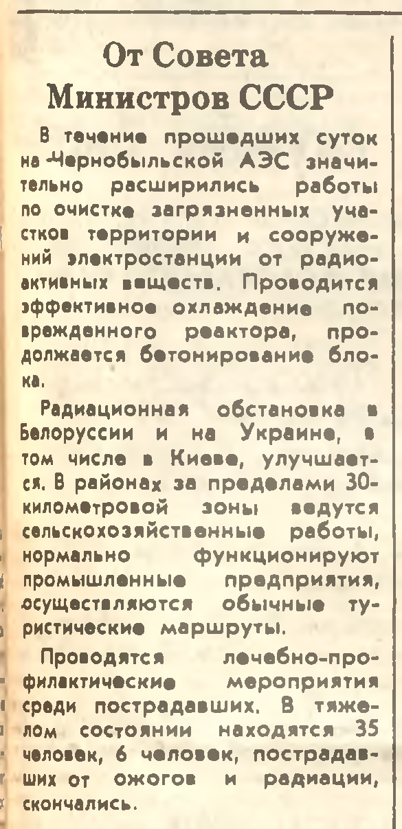 Что уже к 5 мая 1986 года из 50 населенных пунктов было эвакуировано 11,4 тысячи человек.
