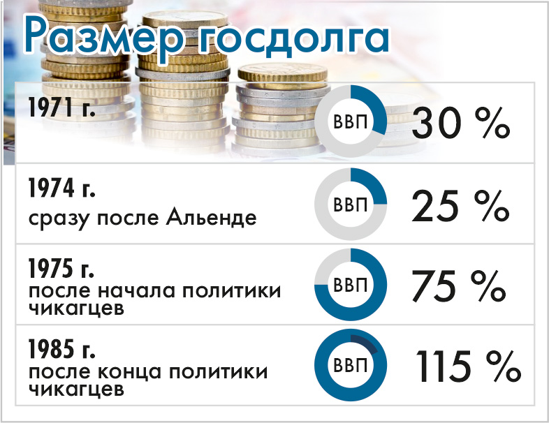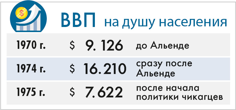 В течение двух лет хунта, пришедшая к власти в сентябре 1973 года и состоявшая из армии (Пиночет), ВВС (Лей), ВМС (Мерино) и полиции (Мендоса), оставалась верна своей первоначальной «программе»: она восстановила ситуацию, существовавшую до Альенде, вернула национализированные активы сначала ТНК, а затем землевладельцам, которые получили обратно 25 процентов своих активов, но зачастую лучшие земли. Хунта не тронула традиционный государственный сектор, унаследованный от 1930‑х и мандата президента Карлоса Ибаньеса. Но в июле 1974 года денежная нестабильность все еще не была обуздана, что способствовало прорыву экстремистских взглядов чикагских мальчиков с назначением Хорхе Кауаса в министерство экономики.