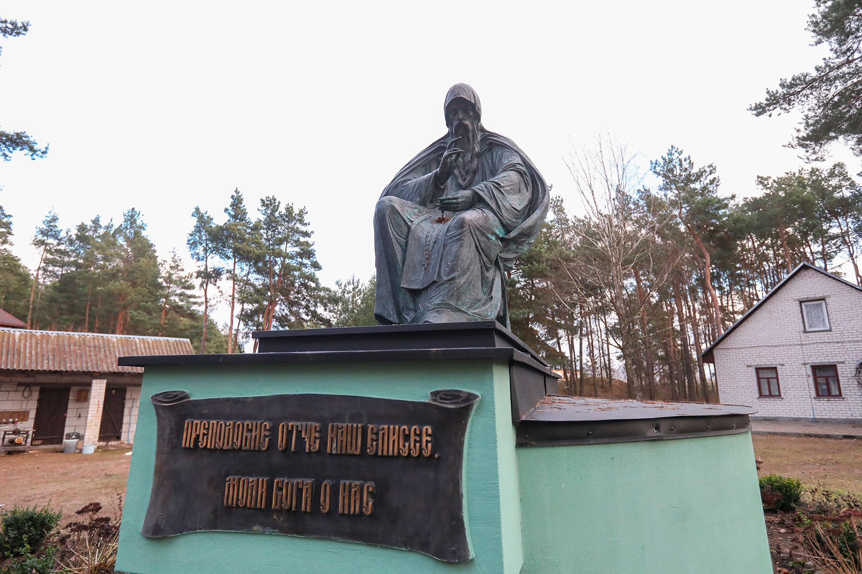 …За Домом милосердия на территории монастыря стоит памятник Елисею Лавришевскому со словами «Преподобне отче наш Елисее, моли Бога о нас». Историю его возникновения рассказал бывший настоятель монастыря владыка Евсевий: