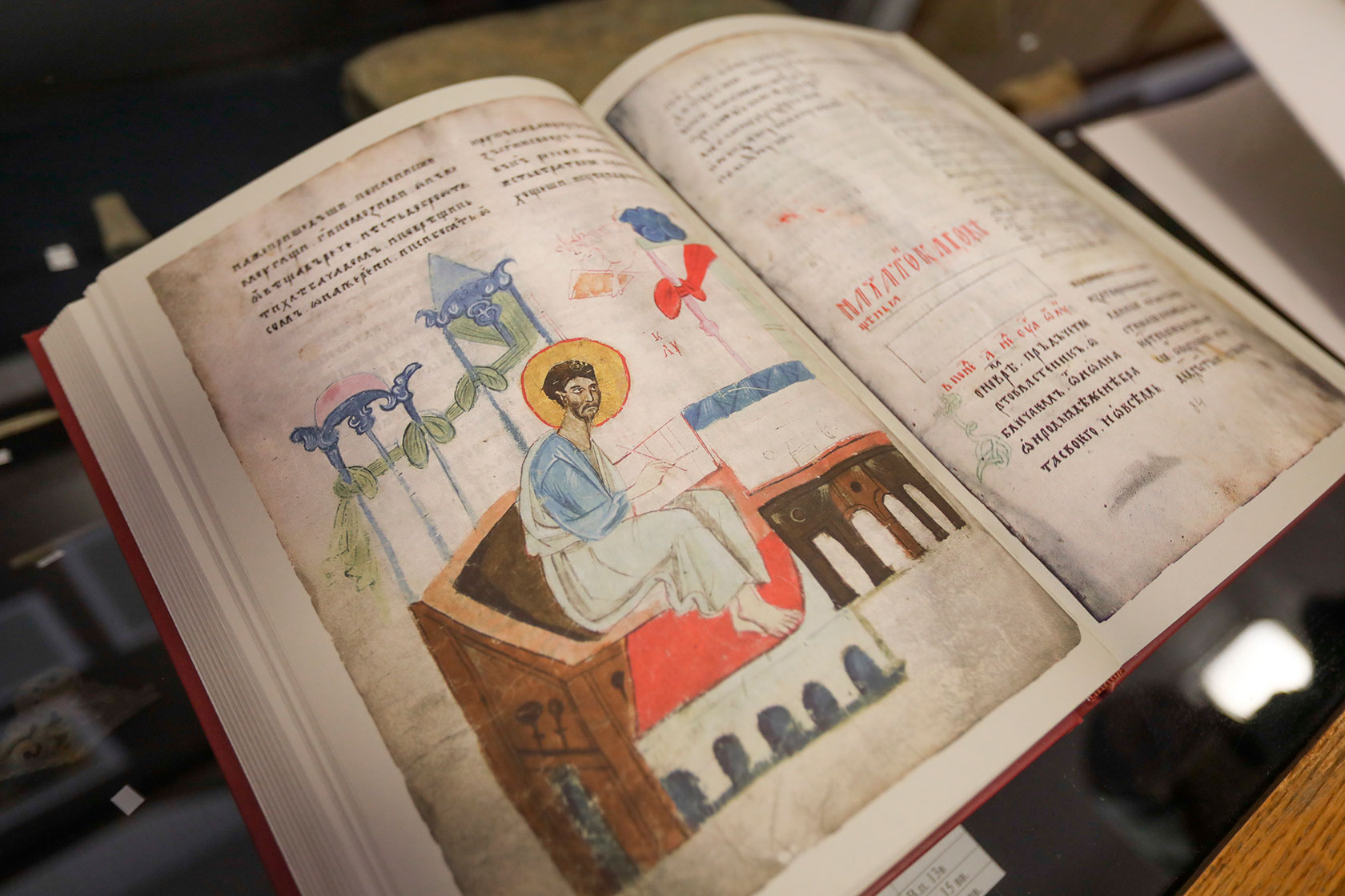 Кстати, оригинал знаменитого Лавришевского Евангелия хранится в Кракове — монахи подарили монастырскую книгу князю Чарторыйскому, рассказывает хранитель музея Анна Киселева и показывает копию книги: