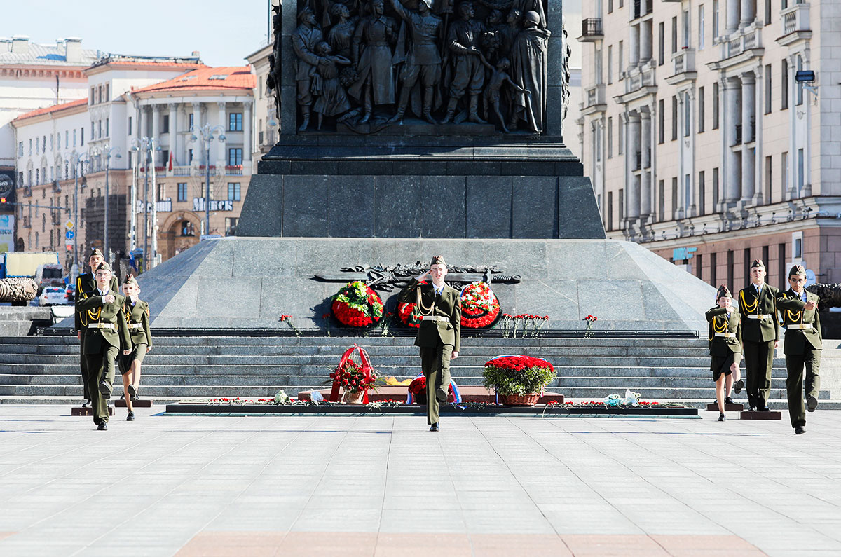 — Иная форма площади позволила вывести подземный переход к монументу и Вечному огню, а для смыслового наполнения образовавшегося на поверхности пространства мы предложили установить по бокам небольшие гранитные блоки с надписями — посвящениями городам-героям, — продолжает Борис Школьников. — Вечный огонь был вынесен чуть вперед, если смотреть со стороны реки Свислочь, и получил новое, более торжественное обрамление. Аванплощадь перед ним позволяла проводить различные торжественные мероприятия.
