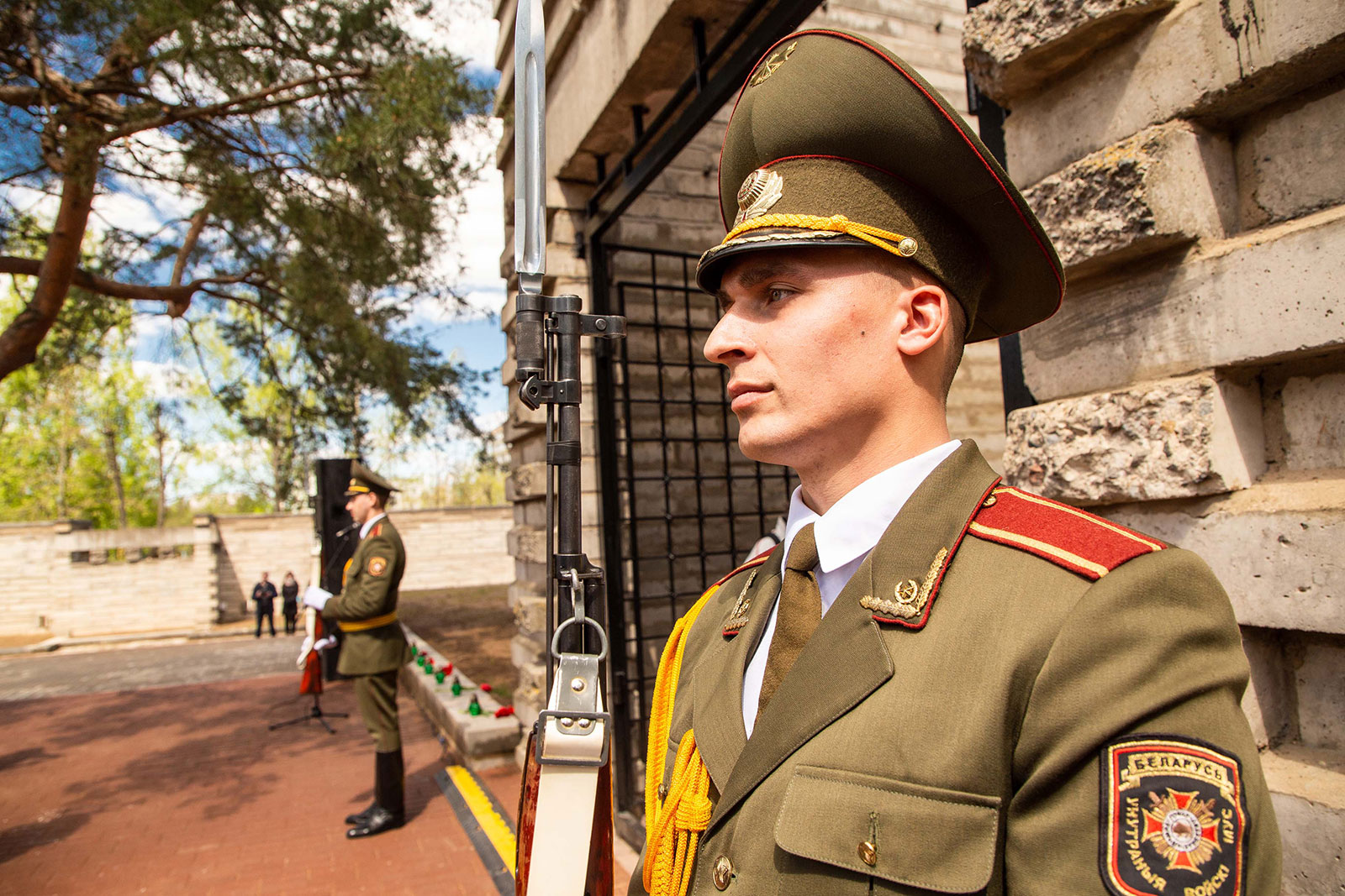 Внутри комплекса, капитально обновленного в 2020-м, братские могилы в несколько рядов. В одних лежат 53 советских воина, погибших в июне 1944-го в окрестностях города. Среди них бойцы 238-й и 369-й стрелковых дивизий 2-го Белорусского фронта. В других — несколько защитников Могилева, павших в июле 1941 года и обнаруженных поисковиками в мирное время. Увековечены на плитах и имена подпольщиков.