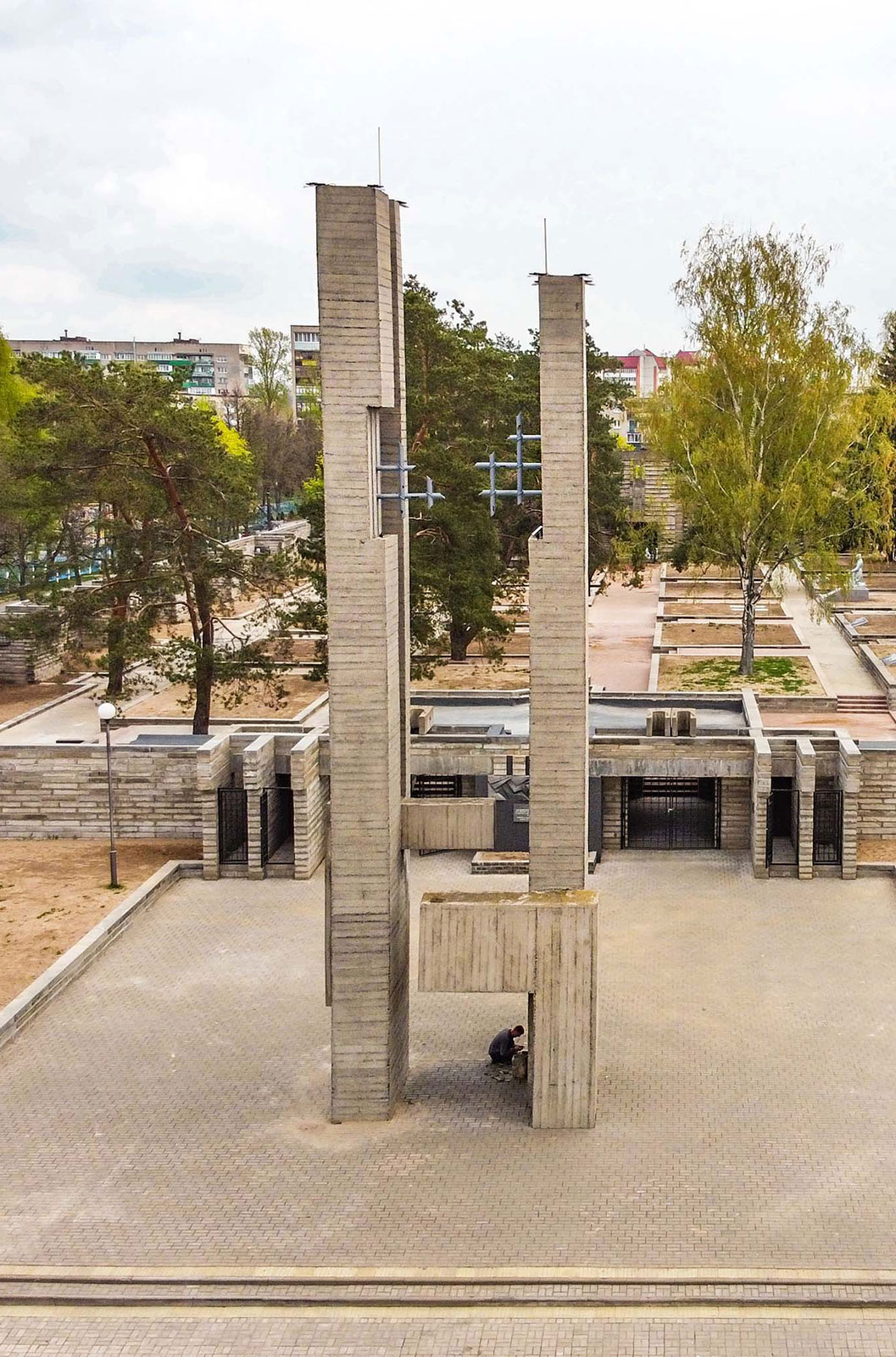 10-метровые стелы с разорванной решеткой, нарочито грубые серые плиты, низкий потолок на входе, имитация колючей проволоки… Ступаешь на территорию мемориального комплекса «Луполовский лагерь военнопленных» на проспекте Шмидта в Могилеве — и погружаешься в атмосферу скорби.
