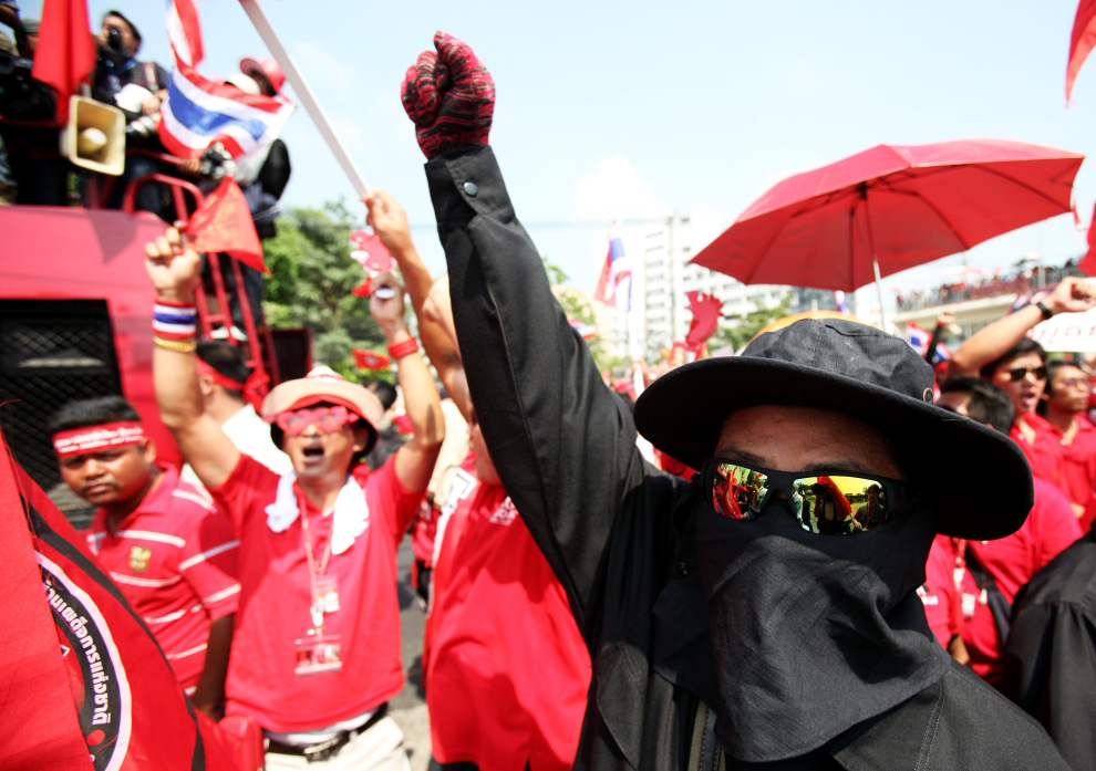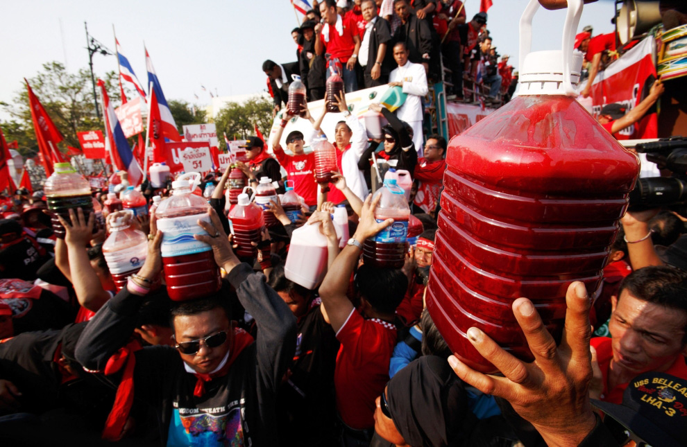 «Красные рубашки». Красный цвет — это цвет бывших тайских коммунистов, он ассоциируется со студентами Таммасата и, следовательно, с демократическим движением. Этот цвет также выбрали сторонники Таксина. В 2014‑м движение окончательно потеряло власть, но оно продолжает существовать. Более того, протест набирает обороты благодаря крупномасштабным демонстрациям, регулярно организуемым в Бангкоке. Демонстранты требуют настоящей политической революции, в частности отставки премьера Праюта Чан-О-Ча, роспуска парламента, пересмотра Конституции и прекращения репрессий против оппозиции. Они также требуют определенного контроля над огромным состоянием королевской семьи. Но они не хотят упразднять монархию, к которой тайский народ в целом очень привязан.