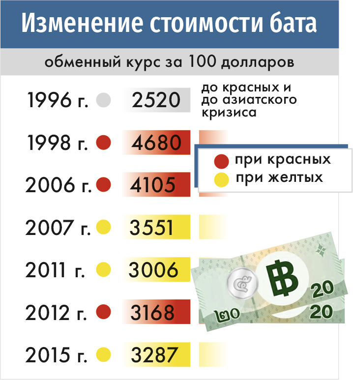 ♦ 2006 г. — Таксин свергнут в результате контрреволюции «желтых рубашек» и военного переворота. Революция оппонентов — «красных рубашек» — подавлена «желторубашечниками» и армией;
