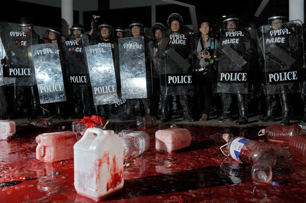 ♦ октябрь 2013 г. — май 2014 г. — новые демонстрации «желтых» против «красного» правительства Йинглак. «Желтые» блокируют улицы, атакуют штаб-квартиру правительства. Туризм и иностранные инвестиции падают. Чтобы остановить «желтые протесты», Йинглак призывает к новым выборам. Но «желтые» занимают избирательные участки. Конституционный суд запретил правительству применять силу против демонстрантов. Позже этот же суд объявляет Йинглак импичмент, но правительство не распускается. «Желтые протесты» продолжаются. Происходит военный путч, «красные» арестованы армией. Дипломатический разрыв с западными державами, осуждающими путч;