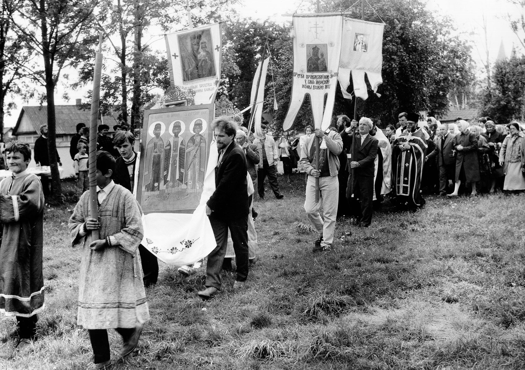 Перенесение частичек мощей Виленских мучеников. Крестный ход по городам и деревням Беларуси, 1993 г.