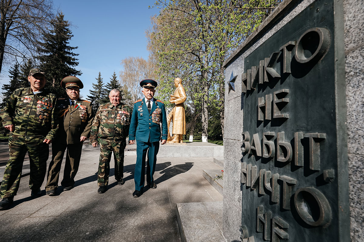 Тогда, в мае 1985-го, колонна еще полных сил ветеранов под радостные возгласы горожан и аромат майских букетов прошла стройным маршем у мемориала. Со словами благодарности перед ними выступил Михаил Жебрак, бывший в то время первым секретарем горкома партии: «Немало испытаний выпало на вашу долю. Но вы не дрогнули, выстояли, выдержали натиск озверелого агрессора, а затем повернули его вспять и разгромили».